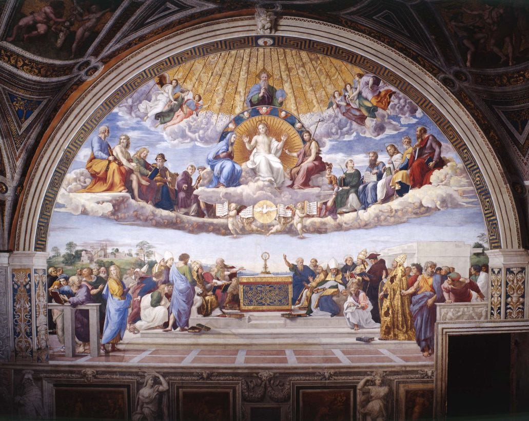 The Disputation of the Most Holy Sacrament (Italian: La disputa del sacramento), painted by Raphael between 1509–1510.